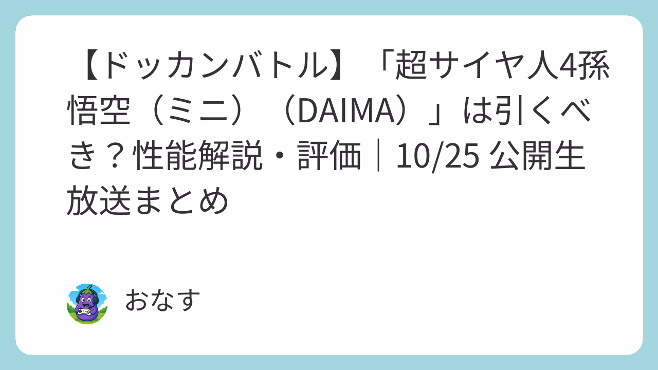今日は、10月25日配信の、ドッカンバトル公開生放送にて発表された情報、新キャラ「超サイヤ人4孫悟空(ミニ)(DAIMA)」の性能、評価、引くべきかをナス科ライトゲーマー目線で解説します😆