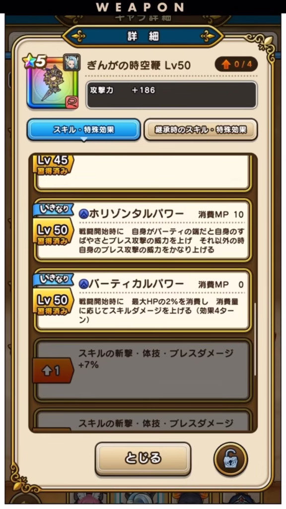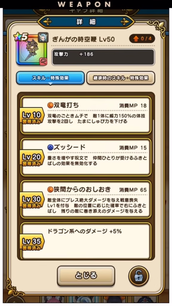やはりバフが自身のみなところや、周回武器としてMP回復、メタル特効がないのが結構キツく、竜神王の杖しかり、白き英雄の旗槍しかり、ブレスによらずとも優秀な周回武器もあるので、そこまで重要性はないです😇