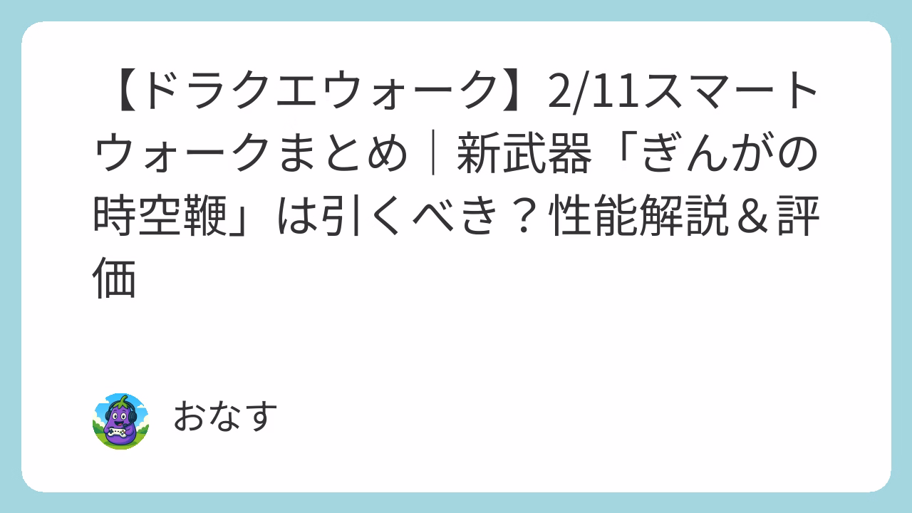 今回は、2月11日のスマートウォーク内で発表されたイベント内容等のまとめ、新武器「ぎんがの時空鞭」の性能紹介&評価、引くべきなのかをこれまでの経験則から、ナス科ライトゲーマー目線で解説!!