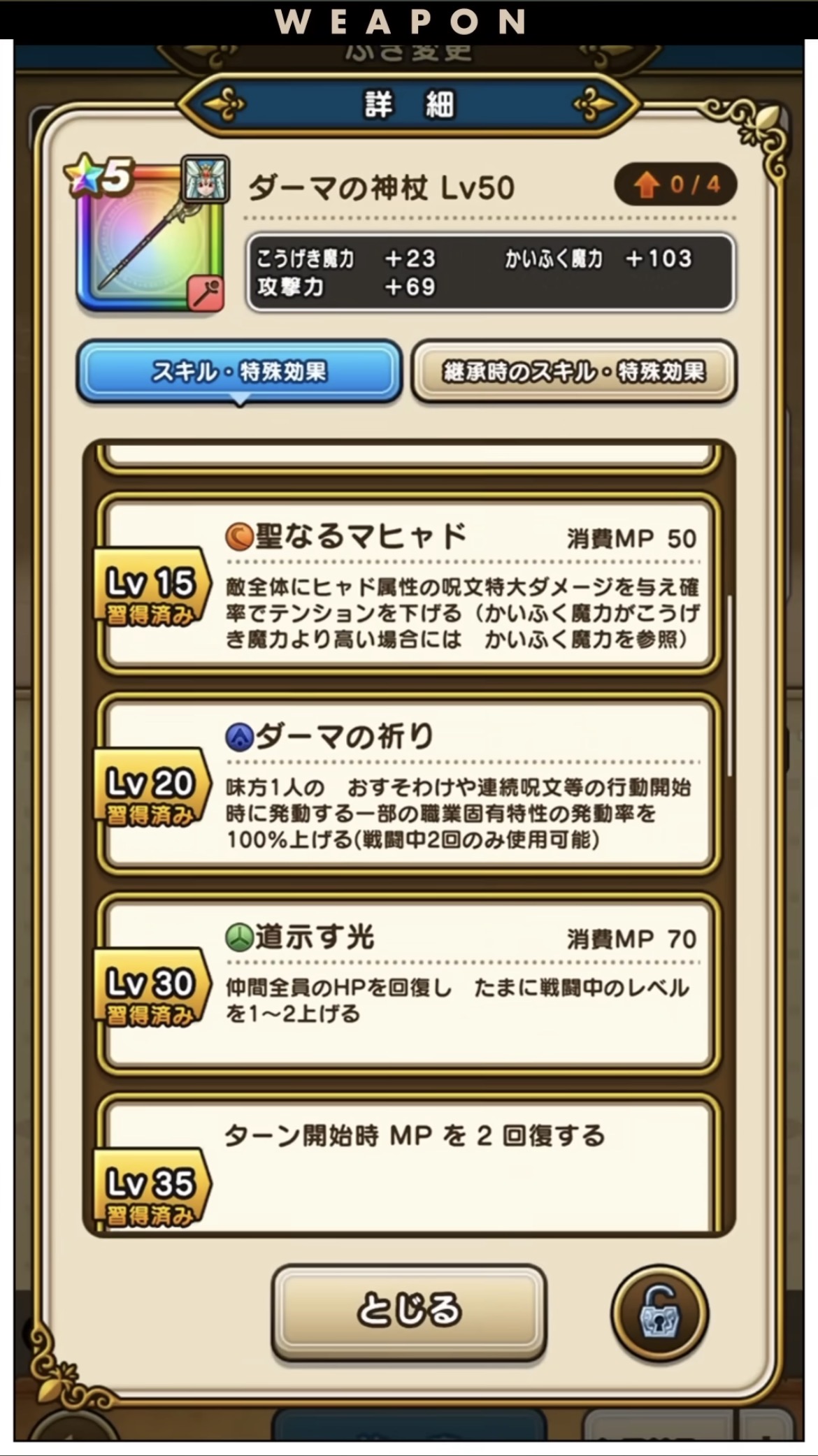 「ダーマの神杖」は最高峰の回復武器ですが、ジェムの投入までは必要ない!
