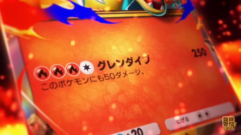 • わざ:グレンダイブ 威力250                                         炎エネ2、無色エネ1                                   このポケモンにも50ダメージ