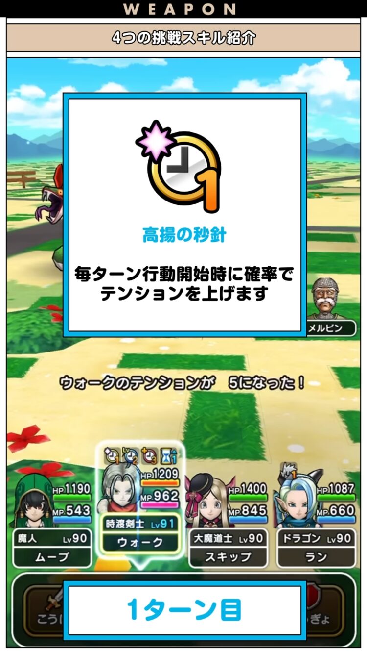 挑戦スキルはどれも強力な効果を持っており、特に毎ターンテンションUP抽選が受けられるのはかなり強みになっています!