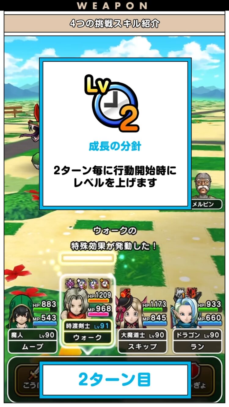 特段何かを狙う必要もなく、偶数ターンに確定レベルUPが可能で、火力の底上げにも十分寄与できる挑戦スキルです!